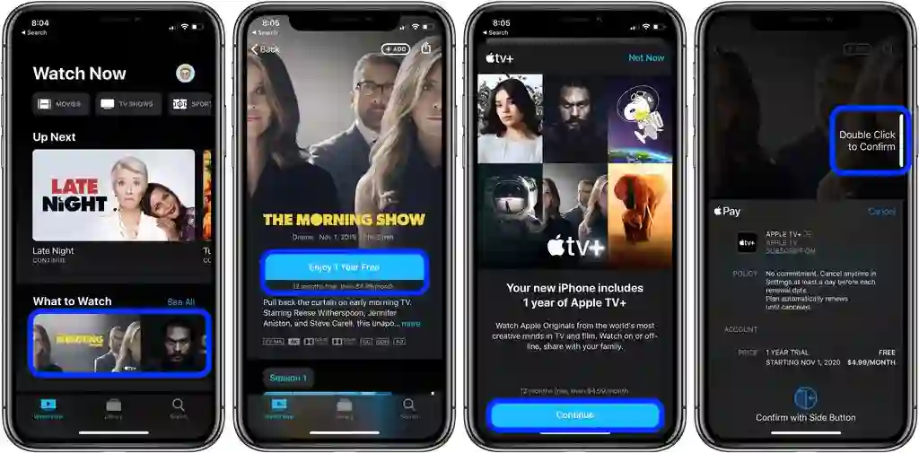 经过多年筹划和准备之后,苹果的流媒体服务 Apple TV+ 终于在 11 月 1 日正式登场,包括美国、澳大利亚、日本、新西兰等在内的 100 多个国家和地区已可体验。虽然中国大陆地区暂时不在支持的国家地区列表当中,但这并不意味着我们无法体验上 Apple TV+,特别是库克曾经在秋季发布会上宣布的「购新机获一年免费体验」的活动,「羊毛党」们绝对不能错过啦。和 iTunes Store 和 Apple Book 在国内的状态不同,使用和体验 Apple TV+ 的条件较为简单,基本上只要你拥有一个 Apple TV+ 已经登陆地区的 App Store 帐号(例如美区/日区/澳区等等),并且该帐号已经绑定了信用卡或者账户的余额足够支付一个月的订阅费用(例如,美区 4.99 美元),那么基本就能够顺利体验上 Apple TV+ 了。在体验之前,你需要将设备上的 App Store 切换至非国区帐号,然后打开 Apple TV 应用,选择开始试用即可观看 Apple TV 剧集。而在正式体验 Apple TV+ 之前,你可能还需要知道以下这几个注意事项:1. 要获得一年的 Apple TV+ 免费订阅服务,请确保你用于订阅 Apple TV+ 的苹果设备的购买日期在今年 9 月 10 号之后,不限机型 iPhone、iPad、Mac、iPod touch、Apple TV 均可;2. 免费获取一年 Apple TV+ 体验的活动是限时活动,你需要在机器激活的三个月内完成兑换,否则将失去该福利机会;(如果购买设备的日期在 9 月 10 日到 11 月 1 日之间,那么将从 11 月 1 日开始计算三个月期限,而在 11 月 1 日之后购买的设备,则从设备激活当天开始计算)3. 在一年免费体验期间,你可以加入或者组建家庭成员共享,最多可与其他 5 名家庭成员共享 Apple TV+ 服务,但每个成员最多只能享受一年的免费体验服务;4. 在订阅期间取消试用的,Apple TV+ 服务将立刻被取消(区别于其他服务会等到到期日才被取消),并且不能重新激活;5. 一年免费试用结束的次日,苹果会开始自动从账户中扣取月费(价格视不同地区而定),你也可以在试用结束的前一天取消订阅,来避免被收取下月费用(苹果会提前发邮件通知你);6. Apple TV+ 支持多种观看渠道,除了在 iPhone、iPad、iPod touch、Mac 内置的 Apple TV 应用中观看以外,还可在 Apple TV 和支持安装 Apple TV 应用的智能电视中观看。此外还支持部分第三方电视盒子,例如 Roku 和 Amazon Fire TV,当然你也可以在网页上(https://tv.apple.com/)观看。目前为止,首批登陆 Apple TV+ 的内容还不算十分丰富,包括了四部苹果自制剧集以及几部第三方授权剧集/电影:《晨间风云》(The Morning Show)丨豆瓣评分:8.6 分简介:让我们揭开帷幕,聚焦每晨陪伴大众迎接新一天的新闻主播,走近早间新闻节目的台前幕后!《晨间风云》剧集由詹妮弗·安妮斯顿、瑞茜·威瑟斯彭和史蒂夫·卡瑞尔领衔主演,以大胆直接的拍摄手法透视当代职场百态。《看见》(See)丨豆瓣评分:7.5 分简介:该剧由《浴血黑帮》编剧斯蒂文·奈特担任制作人,弗朗西斯·劳伦斯([红雀])执导,奈特与劳伦斯共同操刀剧本。剧集讲述在未来的世界,人类失去了视力,社会必须找到新的方式来交流互动、捕猎与生存。一对有视力的双胞胎诞生,所有这一切都受到挑战。莫玛将饰演一个无所畏惧的战士、领导者和守护人。《狄金森》(Dickinson)丨豆瓣评分:8.1 分简介:该剧由海莉·斯坦菲尔德主演,她将在剧中扮演二十世纪现代主义诗歌先驱之一艾米莉·狄金森。阿莲娜·史密斯(《婚外情事》)编剧,大卫·戈登·格林执导。剧集将设定在艾米莉·狄金森生活的时代,故事围绕狄金森家庭,她自我创造诗歌的历程等展开。剧集也将见证狄金森个人的成长过程。《为全人类》(For All Mankind)丨豆瓣评分:7.1 分简介:该剧由乔尔·金纳曼、莎拉·琼斯(《诅咒》)主演,讲述美国在太空登月竞争中输给了苏联,NASA 宇航员们要向火星等更远的地方探索的故事。剧集主创为《太空堡垒卡拉狄加》的幻想剧大手罗纳德·D·摩尔,《冰血暴》制片人马特·沃伯特&本·纳蒂维参与创作,首季共 10 集。