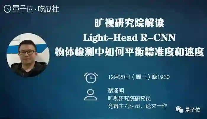 12月20日(下周三)晚19:30,旷视科技系列分享第三期上线,将解读近期论文《Light-Head R-CNN: In Defense of Two-Stage Object Detector》。