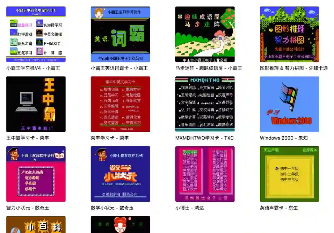 第三个网站还是这一拨人做的。(简直给他们跪了)叫“学习机博物馆”。里头有小霸王学习机,荣丰学习卡,王中霸学习卡、小百科学习机……