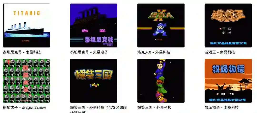 里头收录的貌似是早期的各种家用游戏,FC红白机、小霸王学习机之类的。