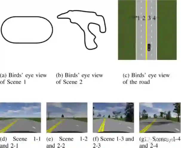 自动解码器训练过程需要收集正、负样本。在所构建的场景中,道路和车道标志是影响驾驶指令的主要因素,而树木和天空则无关紧要。研究者先在模拟环境中随机拍摄图片,然后将每个图像分配给一个数据集,如下所示。