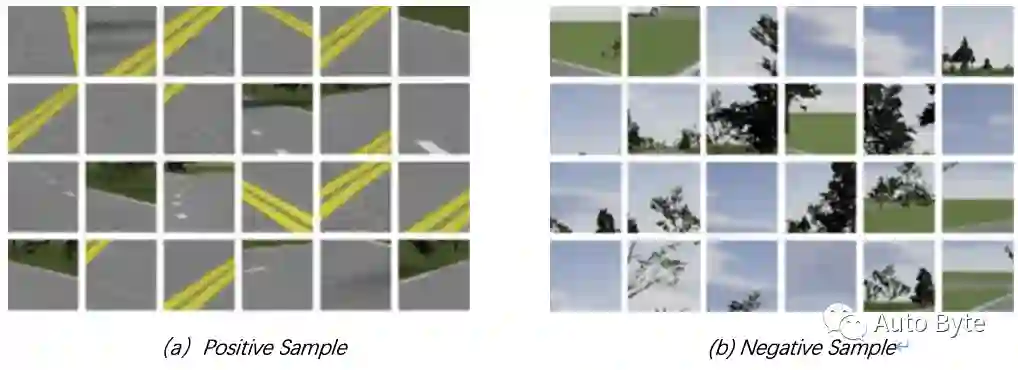 如果图像主要由道路特征组成,则将其归类为阳性样本。另一方面,如果图像主要由树木或天空特征组成,则将其归类为负样本。否则,如果相关特征和不相关特征的比例几乎相同,则丢弃图像。正、负样本集如图4所示。