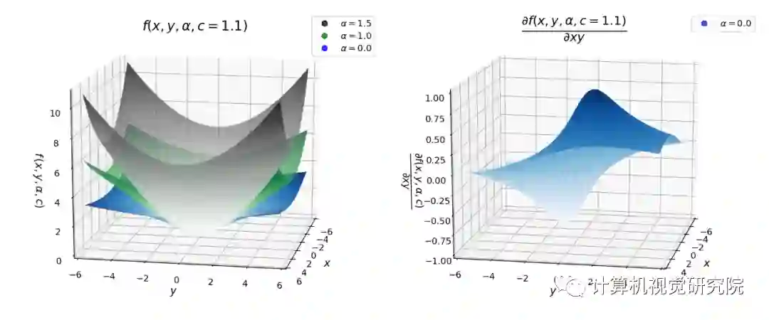 是未定义的,但利用极限可以实现近似。从α=2到α=1,损失函数