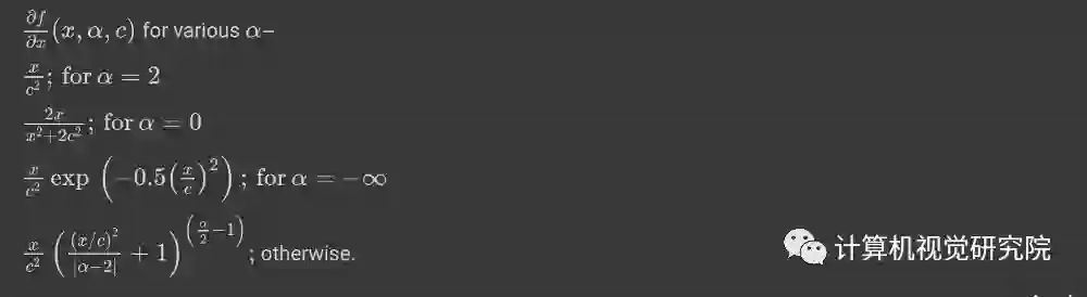 公式 3:鲁棒损失(表达式 1)对于不同的α的值相对于 x 的导数