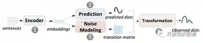 1、2是普通的关系抽取模型过程,3、4是噪音拟合的过程。