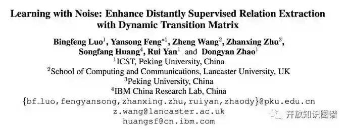Luo B, Feng Y, Wang Z, et al. Learning withNoise: Enhance Distantly Supervised Relation Extraction with Dynamic TransitionMatrix[C]// Meeting of the Association for Computational Linguistics.2017:430-439.