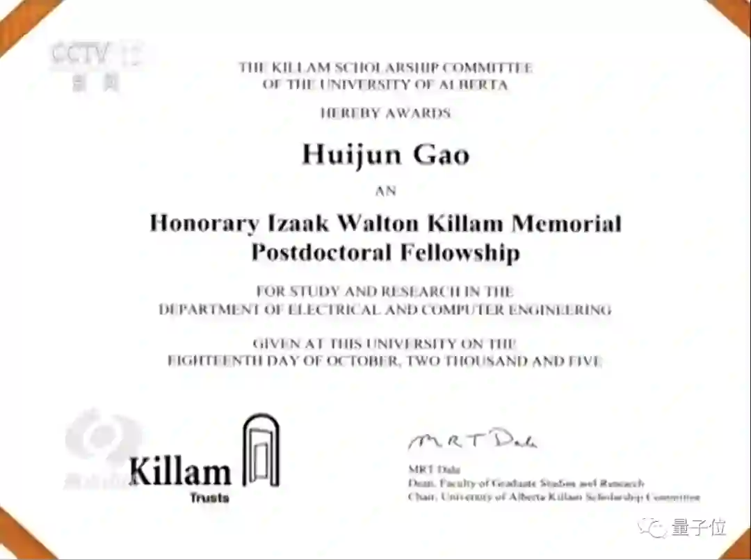 而当年,他还以优异的成绩获得该校当年唯一的Killam博士后奖,结束了自己海外博士后的学习和工作。