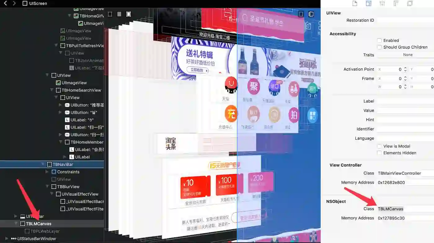 我已经大概知道了淘宝的实现原理了,我需要找到证实我猜测的那行代码。我从TBLMCanvas开始找它的父类TBLMTransparentView,我从TBLMTransparentView中发现了我想要的代码