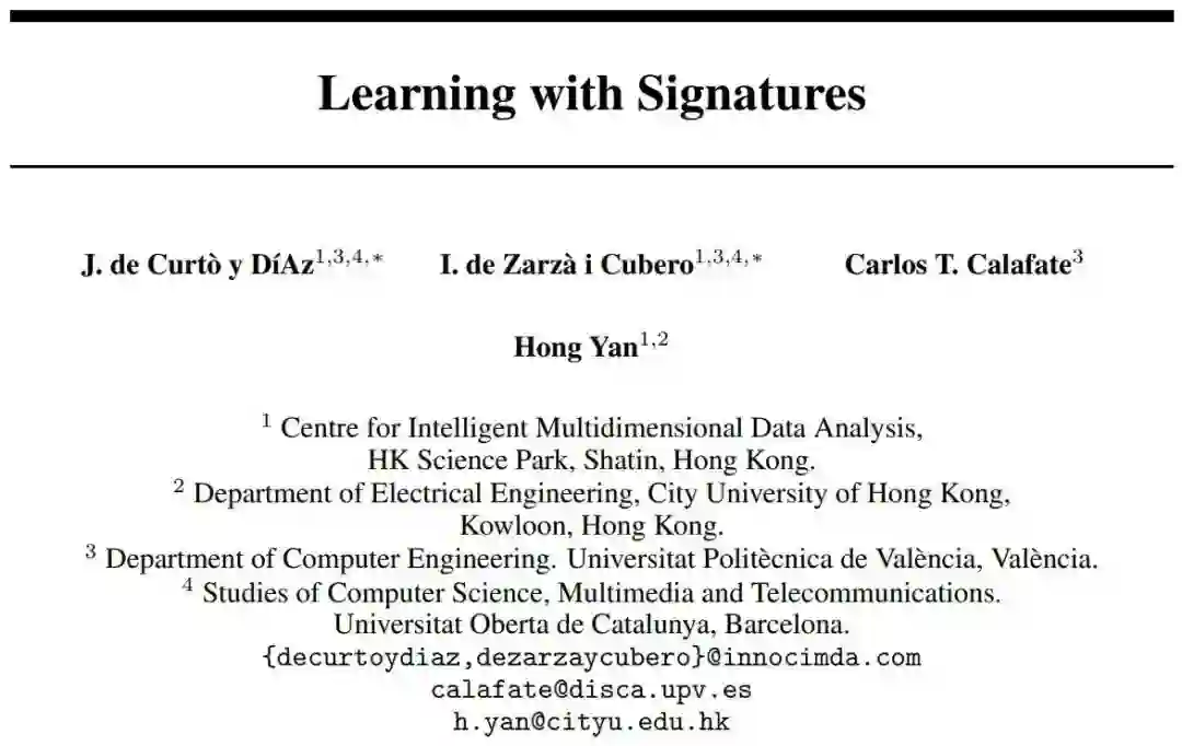 近日,有研究者提出通过使用 Signature Transform 来研究一种新型的学习机制,这是一种最近开发的谐波分析工具,它提供了对不规则采样数据流的紧凑丰富的描述。研究者探索了这样一个观点,即通过将数据转换为一个紧凑而完整的域,该研究可以通过使用很少的标记样本来获得与深度学习相同的经验收益。