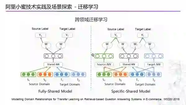 有两种方法,首先Fully-Shared Model是比较相似的两个领域,输入两个领域的知识,然后学习到两个领域公共的部分和表达。然后是Specific-Shared Model这种模型是采用摸着石头过河的方式,虽然两个领域相差比较远,但是也可以很好的过度过去,中间WSC和WTC会采用对抗的学习方式来训练。