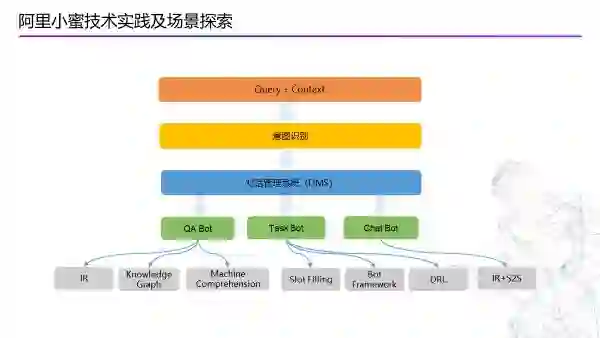 第一类是QA Bot:他使用IR建立自己的知识图谱,还有Machine Comprehension 从一篇文章中读取理解它等技术。