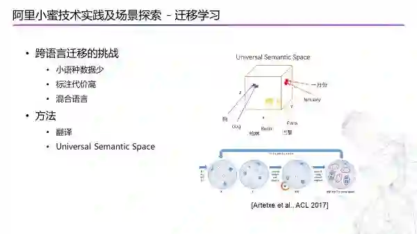 这部分最大的挑战是小语种的资料比较少,标签化的数据更少,所以面临比较大的挑战。我们现在有两种方法去解决:一是翻译,二是对用户的每次query进行Universal Semantic Space,右边的图是一个基础的思路。