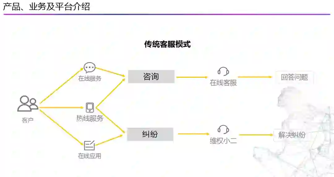 在人机交互行业生态领域发展的大背景下,面向智能服务领域,阿里小蜜在这两年时间同样在不断的升级与变迁,下面我们来对比传统客服与智能服务模式的区别: