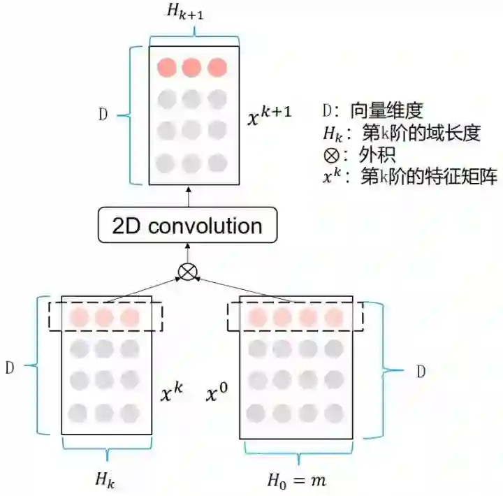 每个维度上的外积用于特征交互。张量 是进一步学习的中间结果。
