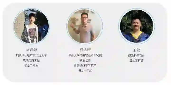 队伍介绍:哈尔滨工业大学二年级硕士生刘育源、中山大学微软亚洲研究院联合培养博士生郭达雅和京东算法工程师王贺。