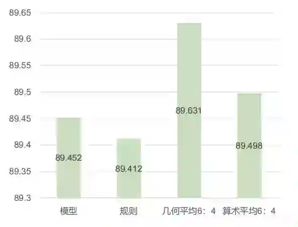 根据模型和规则在不同转化类型上的得分表现,调整权重值,线上可以获得0.5个千的提升 。
