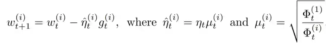 那么,能不能直接把这些拉平呢?这直接引出了 AGVM 算法。以随机梯度下降算法为例,上角标 i 代表第 i 个网络模块(例如 FPN 等),上角标 1 代表骨干网络,代表学习率,锚定骨干网络,可以直接将不同网络组件的梯度 g 的方差