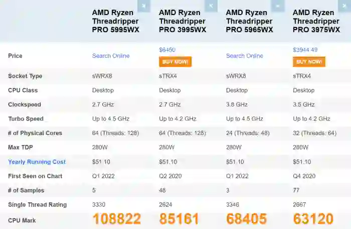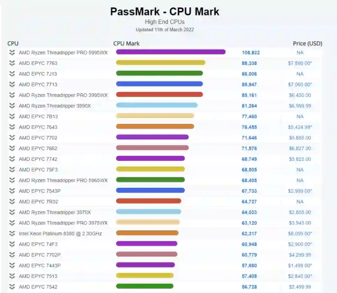 AMD Pro 5995WX 登顶 Passmark 榜单
