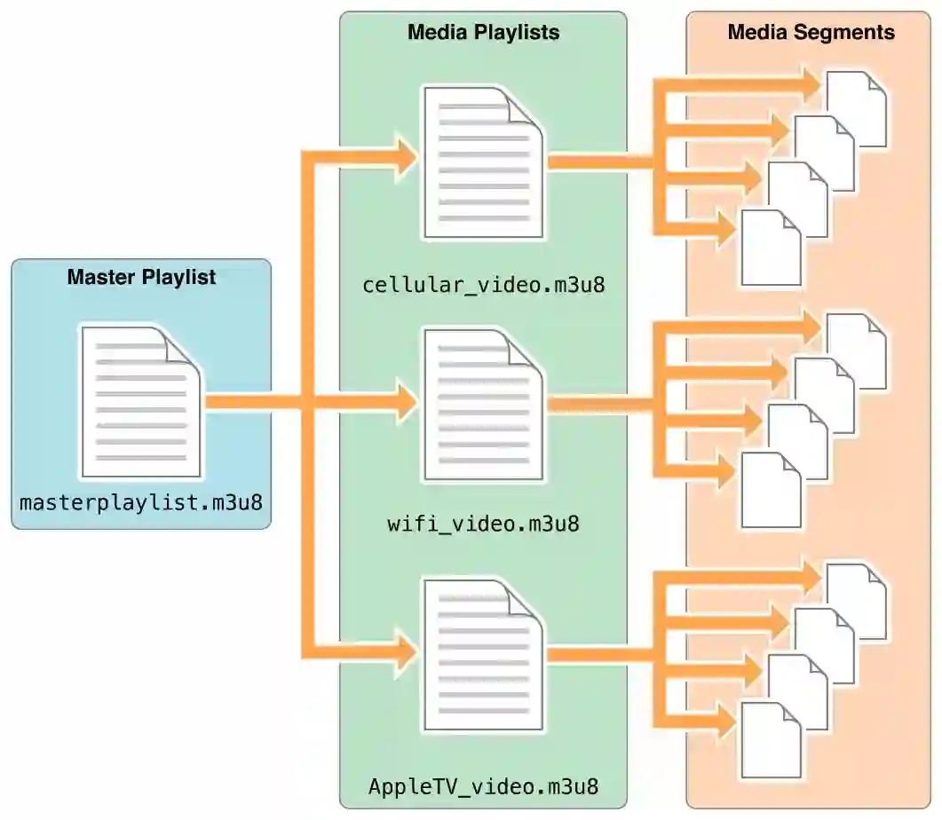 HLS 由两部分构成,一个是 .m3u8 文件,一个是 .ts 视频文件(TS 是视频文件格式的一种)。整个过程是,浏览器会首先去请求 .m3u8 的索引文件,然后解析 m3u8,找出对应的 .ts 文件链接,并开始下载。
