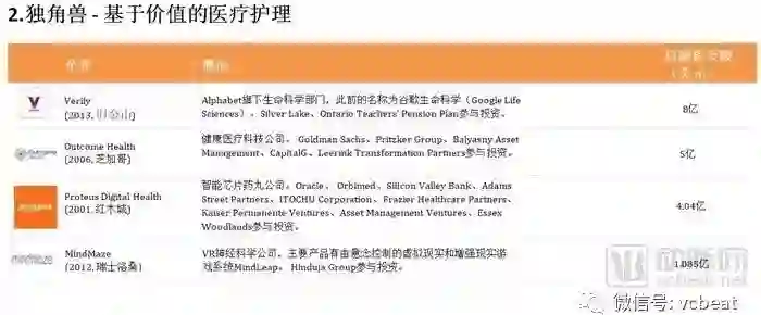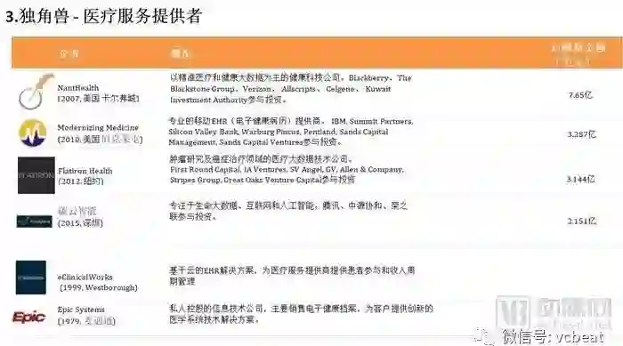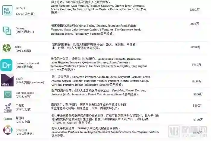 从上表可知,“独角兽”名单中,中国公司包括:宝宝树、微医集团、平安好医生、好大夫、辣妈帮、碳云智能。