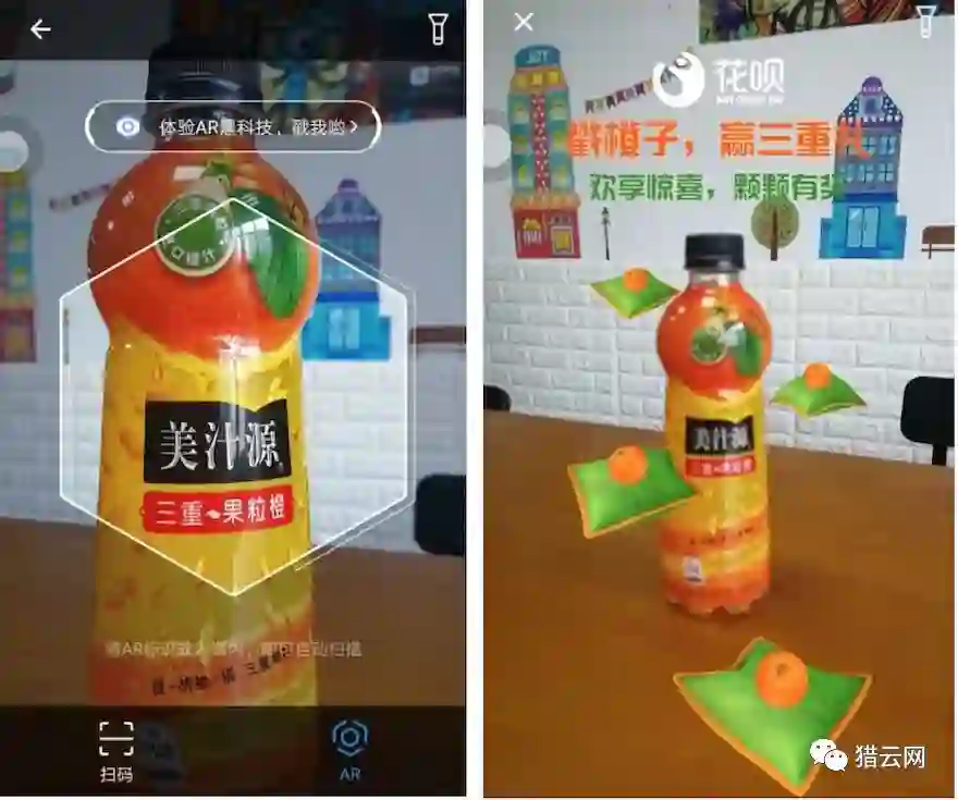 为了传达可口可乐旗下果汁饮料品牌“美汁源”美味健康的理念,结合新一代产品系列,推出了一波全新的支付宝AR玩法。