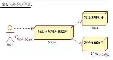 并行方式:将注册信息写入数据库成功后,发送注册邮件的同时,发送注册短信。以上三个任务完成后,返回给客户端。与串行的差别是,并行的方式可以提高处理的时间。