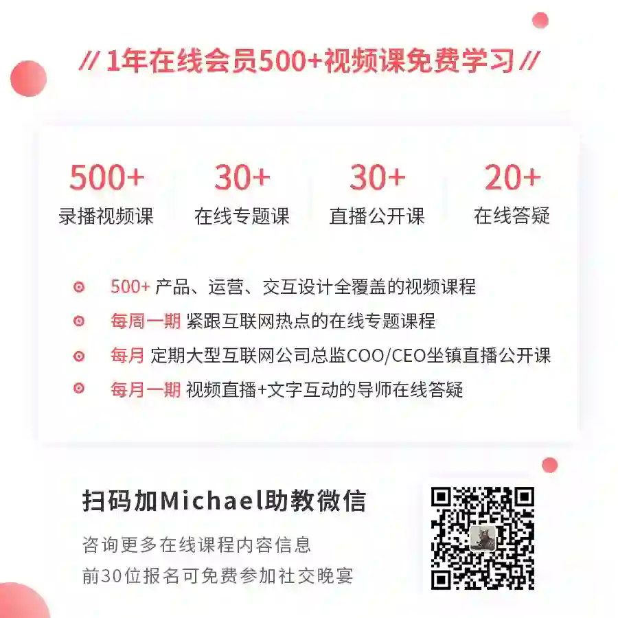 文末彩蛋:如果对课程内容想要近一步了解和体验的同学可以加小助手Michael 的微信(18566703050)领取课程往期学员的学习笔记。