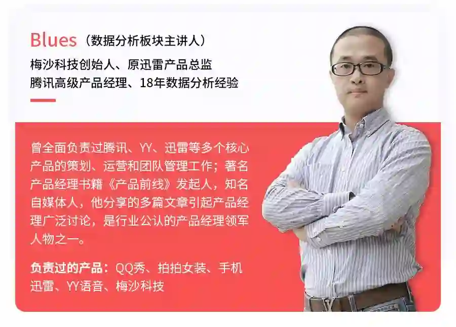 课程从“产品规划、产品运营、用户研究、数据分析”四大版块阐述了产品总监必备的核心能力体系,在详解了系统思维框架之外精讲多个行业产品跨界打法和落地实操技能。