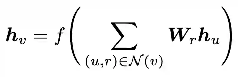 其中,(u,r)∈N(v) 是节点 v 的在关系 r 下的邻居集合, 是节点 v 的表示,