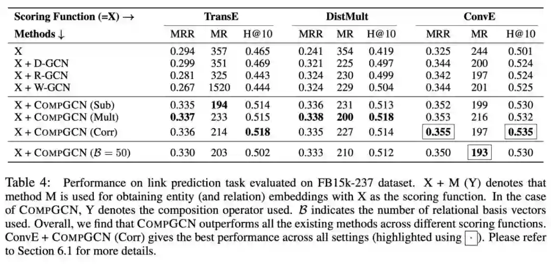 本文提出了一种针对多关系图的图神经网络 CompGCN,可以同时学习到节点和边的表示。通过一组基向量,CompGCN 可以用较少的参数实现对大量关系的描述。最后,作者通过大量的实验验证了 CompGCN 的有效性。