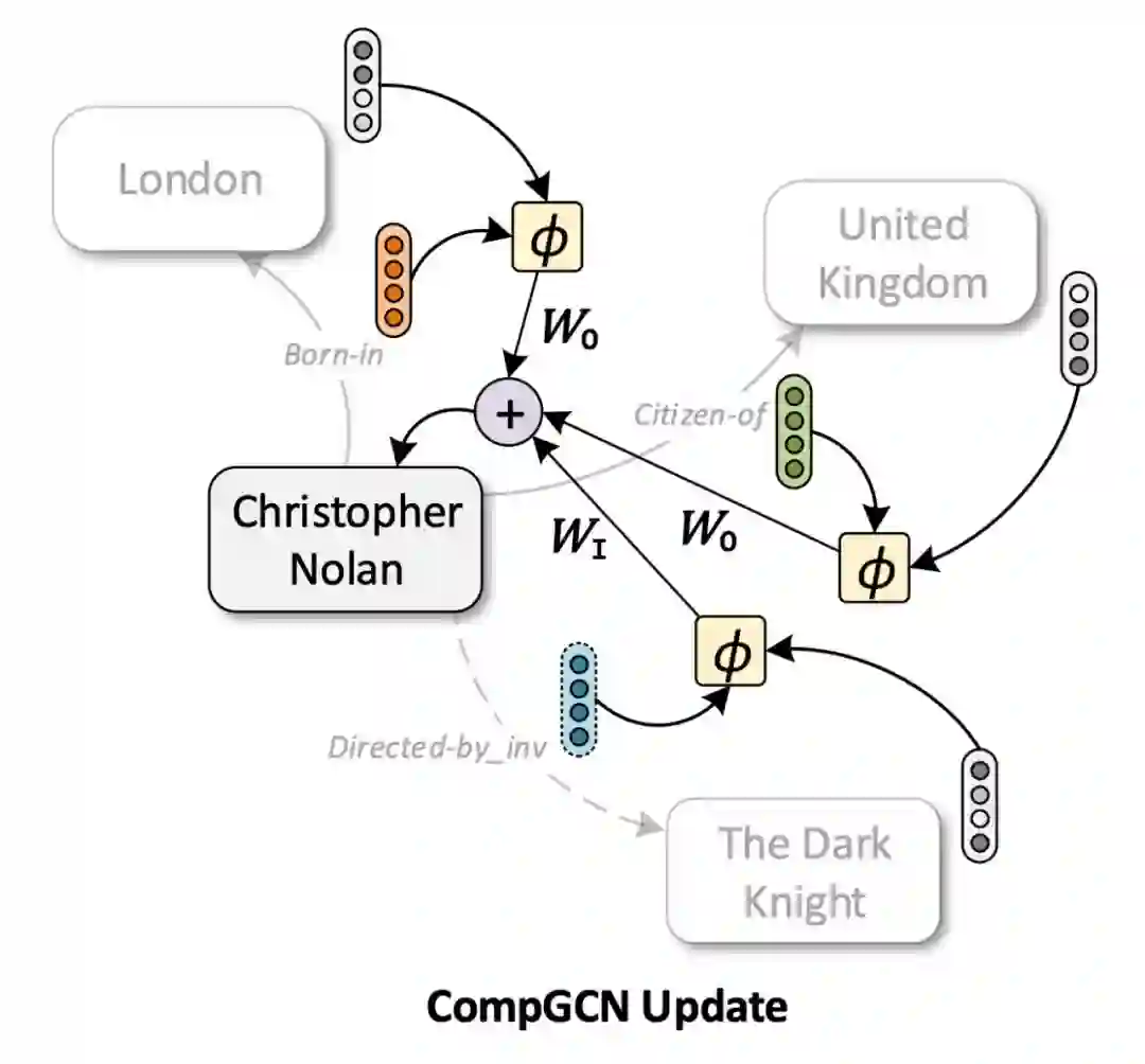 设计了 CompGCN 模型,一种可以考虑多种关系信息的图神经网络框架,来同时学习节点和关系的表示。