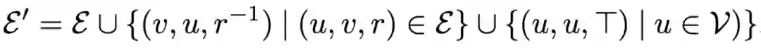本文综合考虑多关系图上的 3 种边类型:有向边 R,如 (u,v,r);反向边 ,如