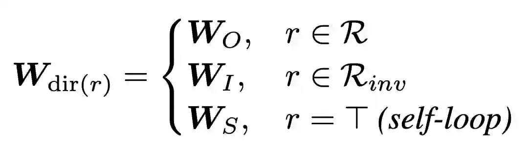 其中,λ(r) 是边的类型。回忆之前介绍的三种边类型:有向边,反向边,自连边。相应的投影矩阵也有 3 种。