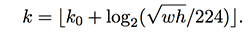 其中,w和h为ROI的宽度和高度,k0 = 4,k对应FPN中的Pk层。