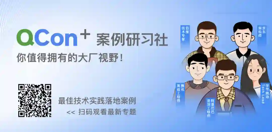 QCon+ 案例研习社(又名:大厂案例)是极客时间平台推出的视频案例课。内容由领域内技术专家出品审核、数百位不同大厂 / 独角兽公司的一线开发工程师、项目经理、产品经理、咨询师和 Tech Lead 亲身分享,所有实践案例都经过至少三个月打磨。QCon+ 专注于提供最接地气、最可靠的技术解决方案,目前已更新 90+ 专题、300+ 实战案例。专题每周一持续更新中,敬请期待!