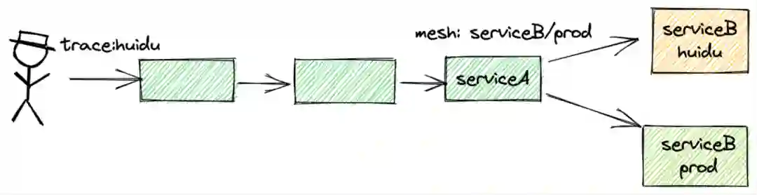 因为我们线上经常会出现应用不同的环境集群,其实是为了不同的诉求去用的,比如像搜索集群和交易集群,它们需要进行物理隔离,然后比如上线的时候,可能需要做一定的灰度验证等等。这样的话我们就可以基于 trace 的参数匹配去控制它,只要以这样两种方式作为路由模型的支持,是满足绝大部分的业务诉求的。