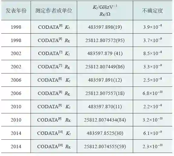 表2 约瑟夫森常数KJ和冯·克里青常数RK测量进展一览表