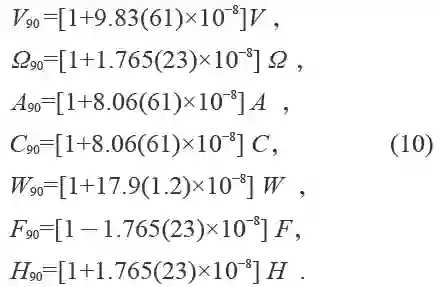 其他的约定电单位按V90和Ω90推算,例如:电流约定单位A90=V90 /Ω90,功率约定单位W90= A90V90,电容约定单位F90=C90/V90等,2014 年平差给出了KJ与KJ−90及RK与RK−90之间的关系: