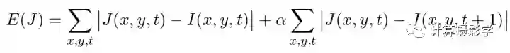 这个式子的第一项表征时空窗口中输出帧和输入帧之间的相似性,第二个式子则表征输出帧与帧之间的平滑性。