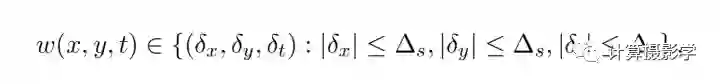 正如前面所讲,输出视频中的每一个像素都能够从输入视频的不同帧不同空间位置中找到,因此将输出视频表达为: