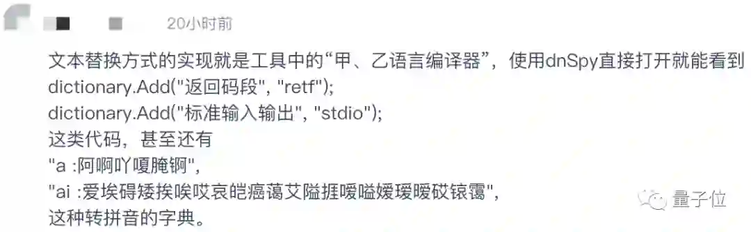 除此之外,这位开发者还更加犀利地指出,“所谓的’甲语言‘其实就是ASM汇编语言”,“使用了文本替换方式……就是换了个名称罢了”。