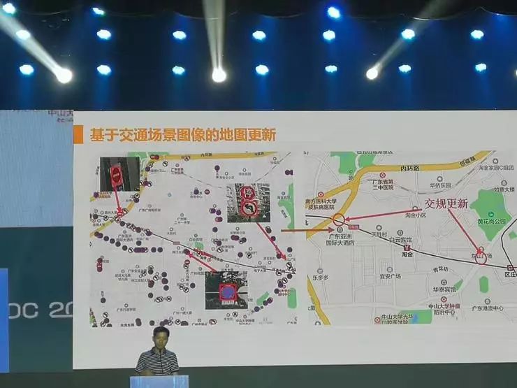 同时,在滴滴平台上开始安装大量车载设备,20%滴滴订单里都有车载设备以及摄像头覆盖,到今年年底会提升到50%。利用这些数据,可以对道路的属性进行侦测,并标记处合适上下车以及停车点的位置。