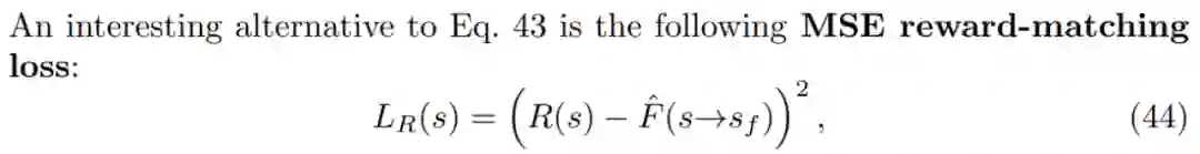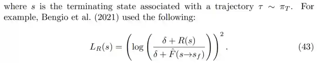 如果有一个像公式 43 中的奖励匹配损失,终端流 log F(s→s_f)的 log 有效目标是 log-reward E_R[log R(s)]的预期值。这表明了使用奖励匹配损失时,GFlowNets 可以泛化至匹配随机奖励。