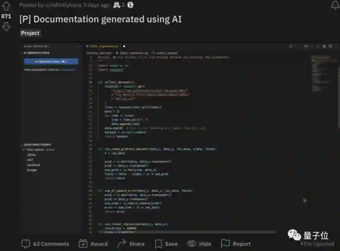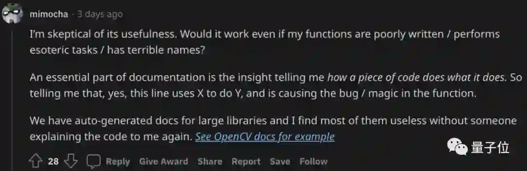 不仅是Copilot,“AI给代码做注释”这事最近在Reddit也比较火。
