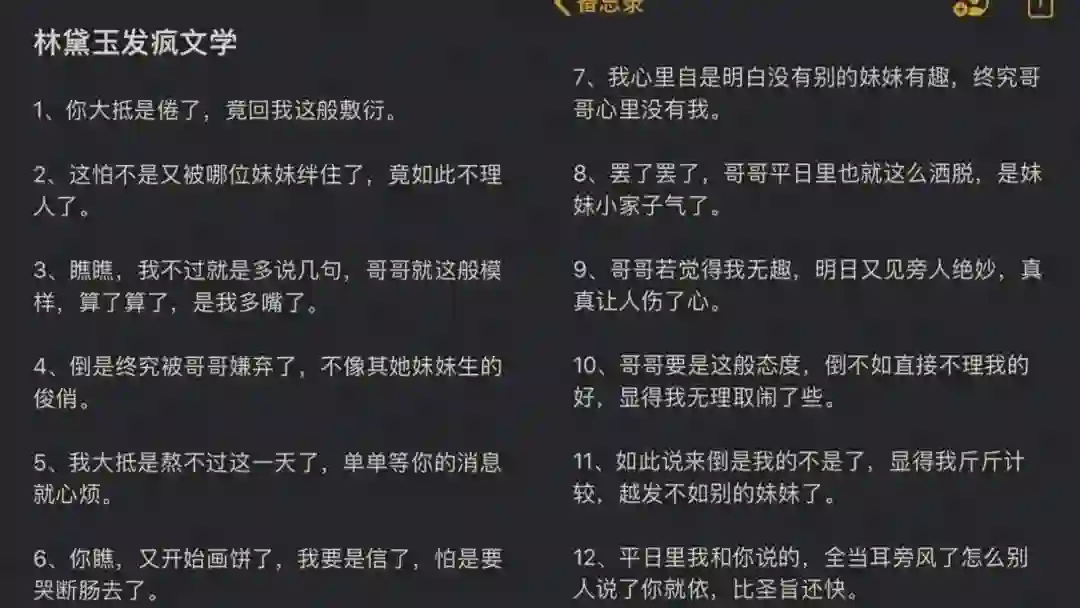 看到这句话想起林黛玉的朋友,最近应该也在被林黛玉发疯文学洗脑。