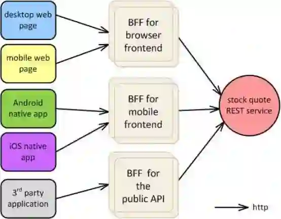 微服务接口隔离的目标,是确保每种类型的前端都能对接最匹配其需求的服务契约。例如,移动原生应用希望调用以短 JSON 表示的数据响应端点;Web 应用则使用完整 JSON 表示;旧版桌面应用程序在调用时同样需要完整表示、但要求使用 XML 格式。另外,不同的客户端往往会使用不同的协议。例如,外部客户端可能希望使用 HTTP 来调用 gRPC 服务。