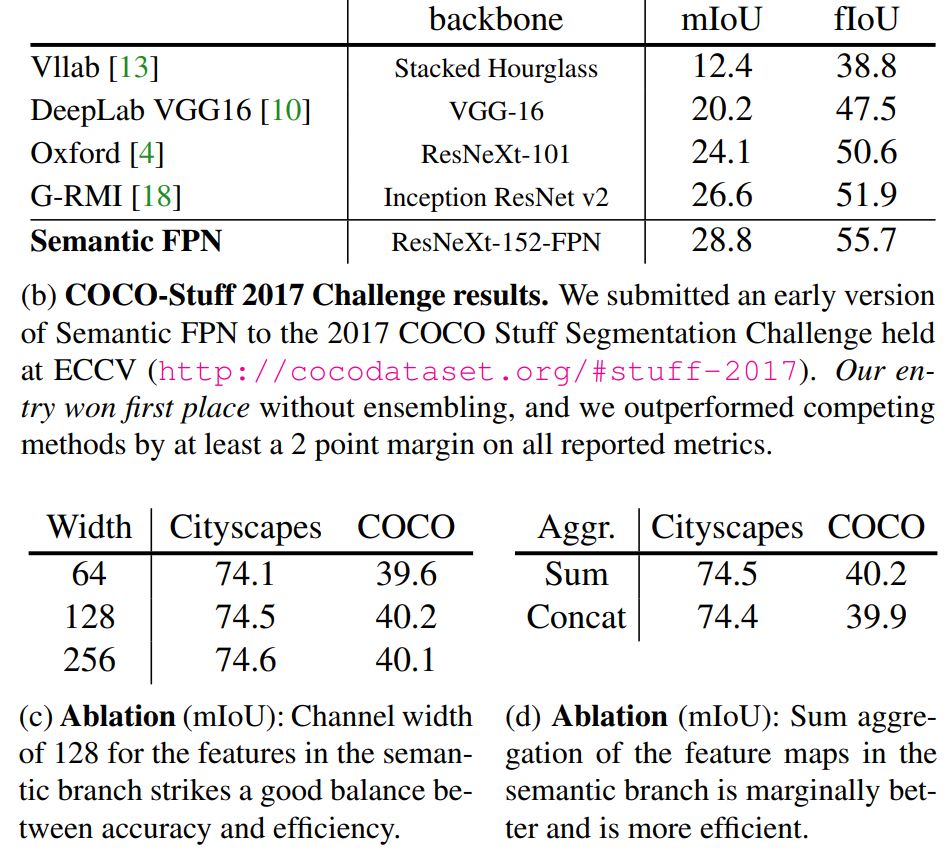 表 1:使用 FPN 的语义分割。