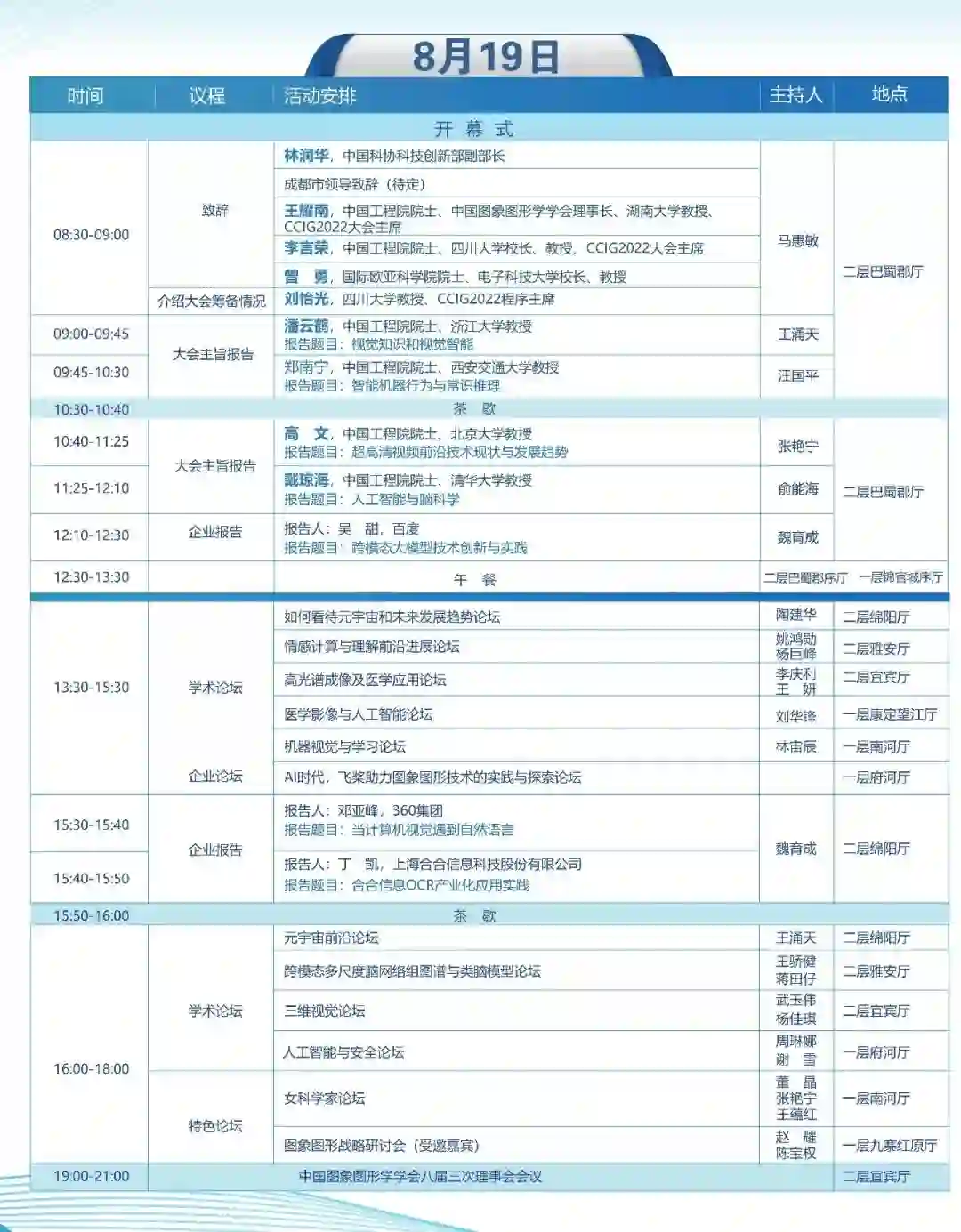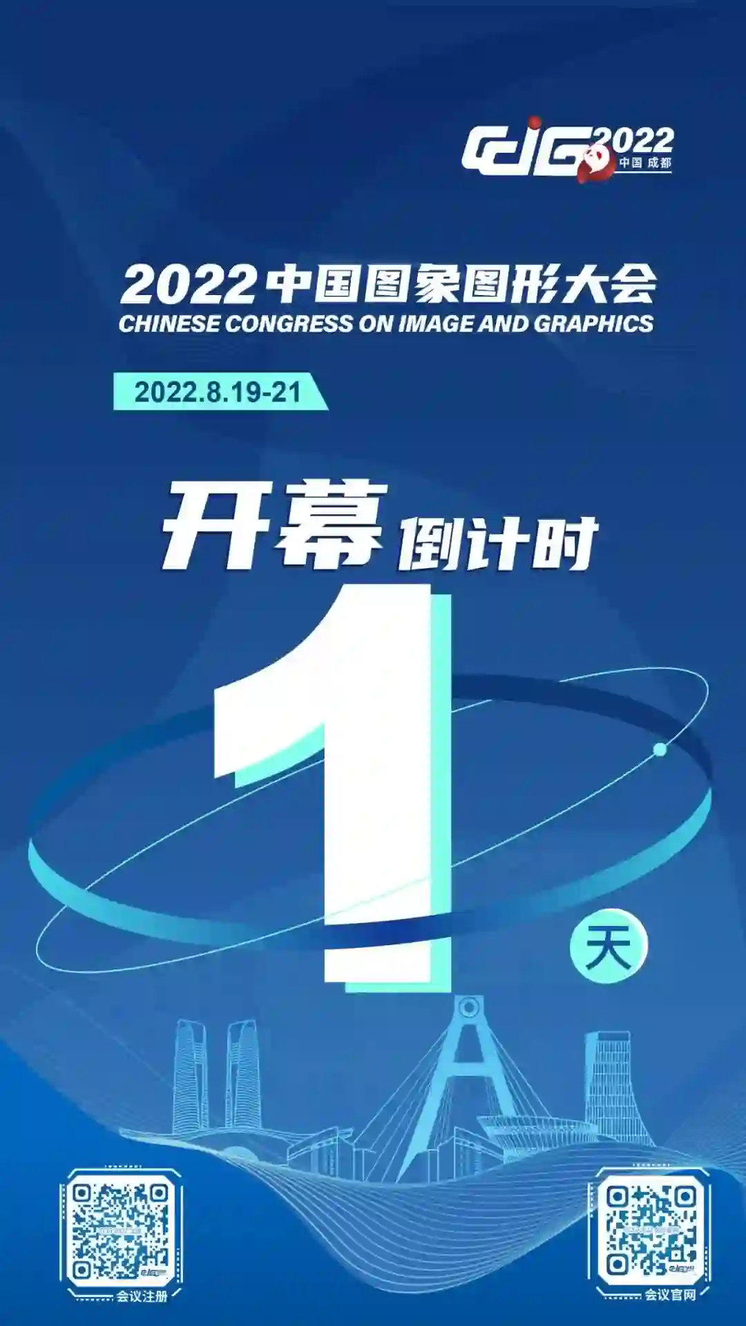 2022中国图象图形大会(CCIG 2022)将于2022年8月19-21日在成都盛大举办,大会以“图象视界,形智未来”为主题,由中国科学技术协会作为指导单位、中国图象图形学学会主办、四川大学承办、电子科技大学协办、成都市博览局、成都市科学技术协会、成都市科技局支持。