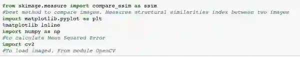 上述公式看起来非常复杂,但不要害怕。借助于NumPy,可以相当容易地计算出MSE;另外,由于SSIM是Sci-Kit图像库的内置方法的一部分,因此也可以很容易地计算出SSIM。