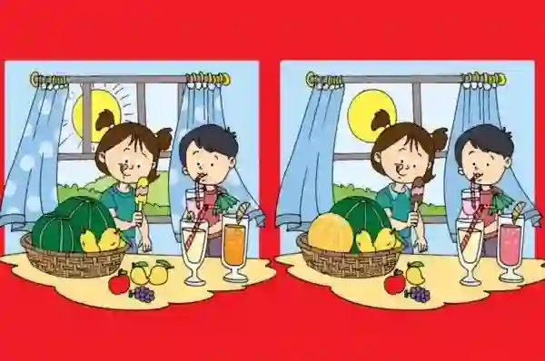 答案:水果、冰淇淋和饮料的颜色发生了明显改变,窗帘、太阳也发生了改变,这是不是很简单呢?如果有补充的答案,请在留言处给出哦!